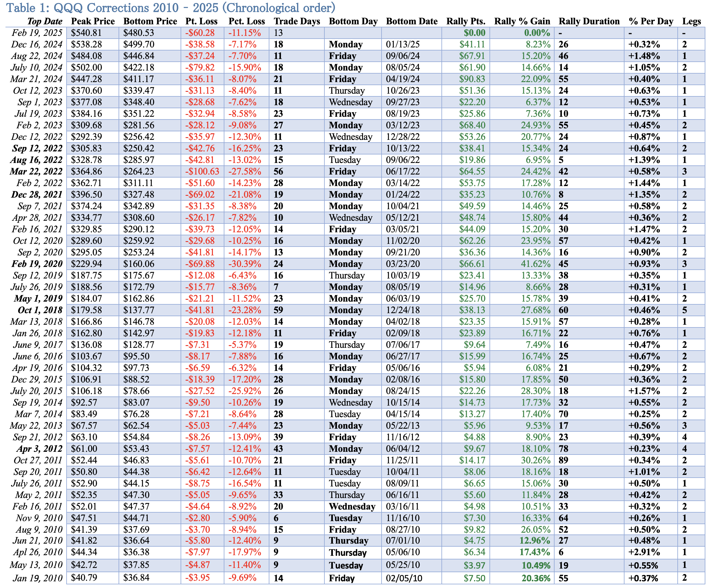 “A table we may put together is a single leg table where we examine the largest legs down and whether a rebound followed or not.”