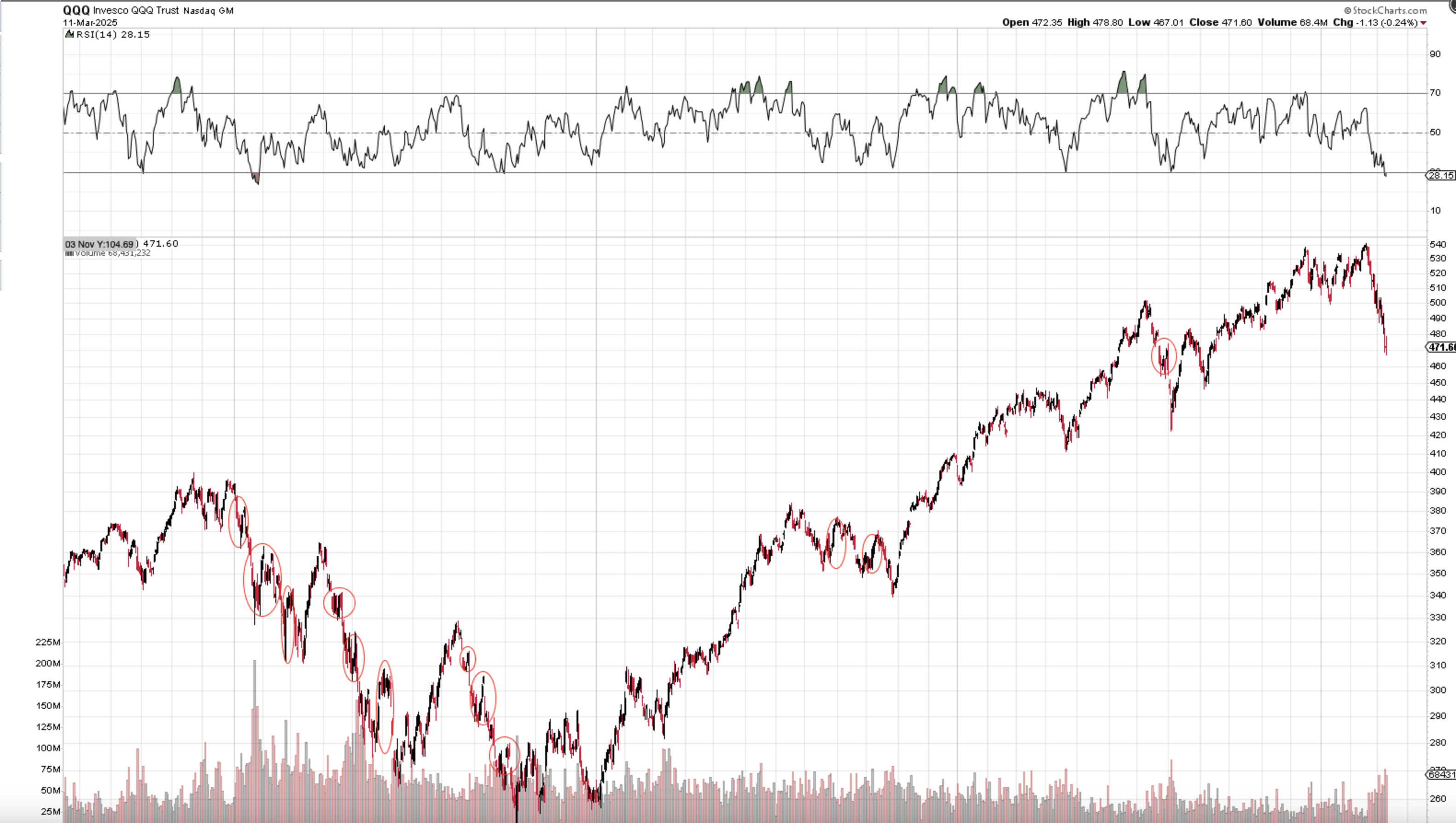 When the QQQ drops 3.75% it really drives up the engagement for this site ????. I am not complaining about getting a breather today though!