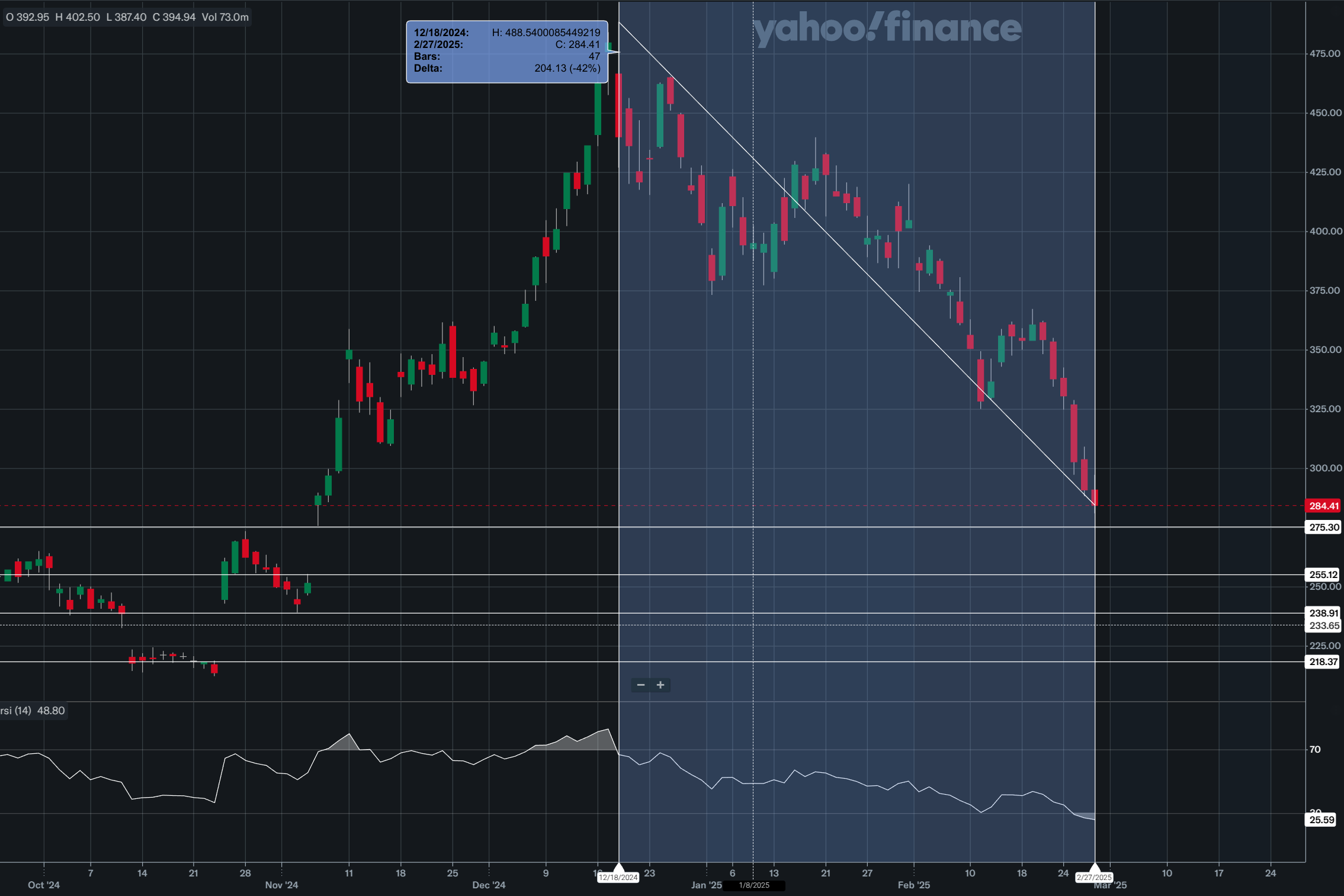 TSLA is nearing two gaps at 275-255 and then 239-218.